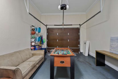 Game room with Foosball table and Corn hole game
