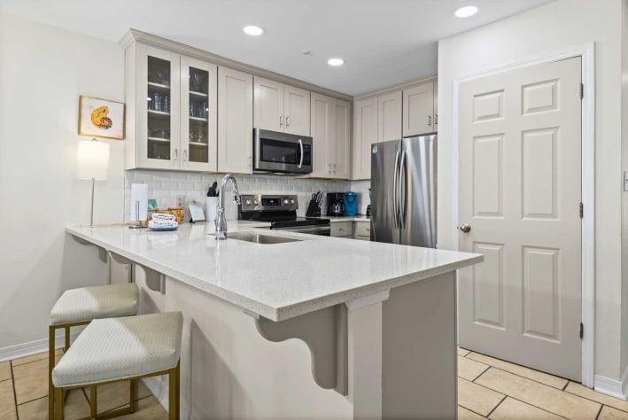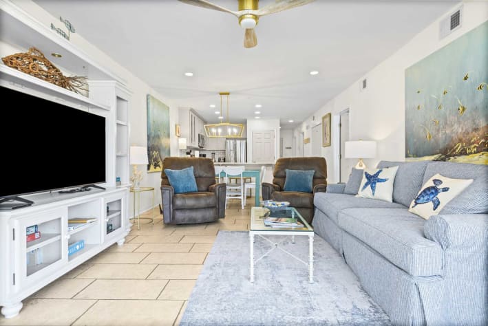 This was the perfect house for my family. We loved the location which was a quick 5 min walk to the beach. We loved that this condo was pet friendly and especially loved that we were on the first floor which made it very easy to take the dogs out. The kitchen was stocked with all the appliances we needed and the beach decor made this the perfect place for my family’s vacation.