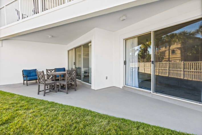 -Ground Floor Convenience: Patio with side Gulf views and easy access to the pet area and parking