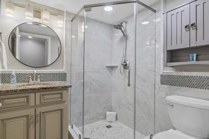 -Master Bedroom: King bed with private attached bath featuring a walk-in shower