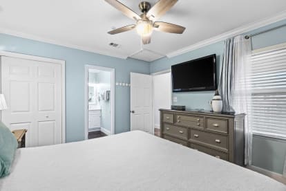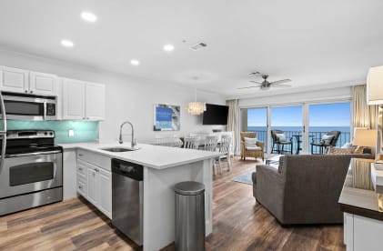 This newly remodeled, gulf front, pet friendly unit has one bedroom with hall bunks, two full bathrooms and a queen-sized pull out sofa, to accommodate 6 guests as well as your fur baby. Large and multiple pets are welcome with prior approval.