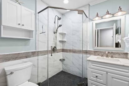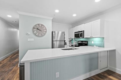 Maravilla 2411 is 792 sq ft and newly remodeled (November, 2021) with completely renovated bathrooms and new floors, paint, scraped ceilings and crown molding throughout. There are two full bathrooms with new ceramic tile, vanities with quartz countertops, lighting and walk-in showers. The fully equipped kitchen features a new backsplash, lighting and spacious quartz countertops.