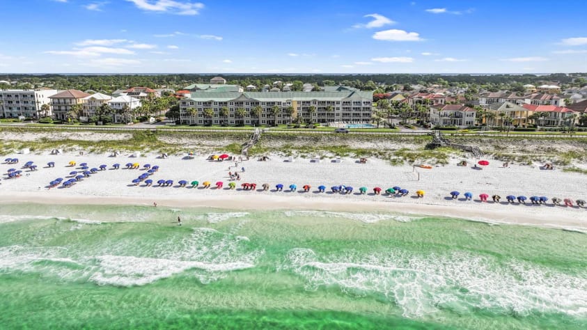 Maravilla, a private, gated community sits across from the beautiful beaches of Destin in the upscale community of Miramar Beach. Privately owned, gated shore access takes guests to the 2.5 acres of sugar-sand beaches and emerald hued waters of the Gulf of Mexico. A true beach haven! Maravilla is the perfect spot for a family vacation or enjoyable reunion with friends. Maravilla's deeded beach access is a major convenience, along with other amenities-tennis courts, clubhouse, 2 pools (one is seasonally heated), hot tub, basketball hoop, shuffleboard, beach volleyball, charcoal grills, and plenty of parking. There is always something fun to do at Maravilla!