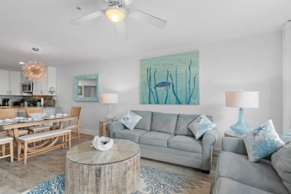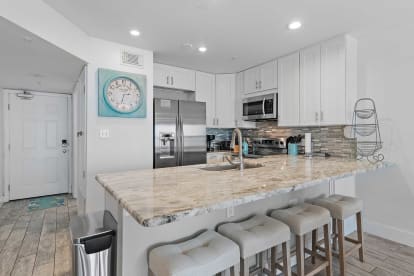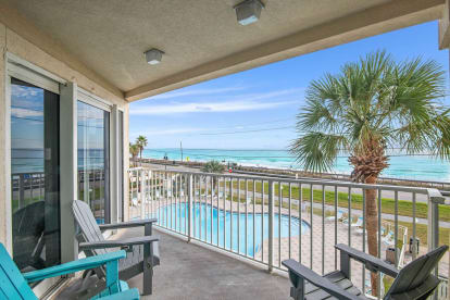 Maravilla vacation rentals in Building 2 offer unobstructed Gulf views, making them one of the only direct beach view rental options in Destin where you can bring your pet along. Maravilla 2310 is beautifully updated with an all-new kitchen and bath updates, offering a wonderful beach and pool view. Enjoy watching the sunset from the covered balcony of this pet-friendly vacation condo in Destin.