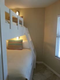 We had a wonderful time in this unit! The king bedrooms were spacious and the bunk room was a perfect size! Our only complaint was the couch was loud when you sit on it and we could have used a few extra trash bags toilet paper and paper towels. We purchased the paper products and left what we didn’t use as well as some dish soap for the next guest. Overall I was very pleased with the unit the decor was nice and the updates in the kitchen and bath are very pretty! The owners also gave us any and all information we would need before we got there so it was all super easy to get there and get in! We would definitely stay there again!