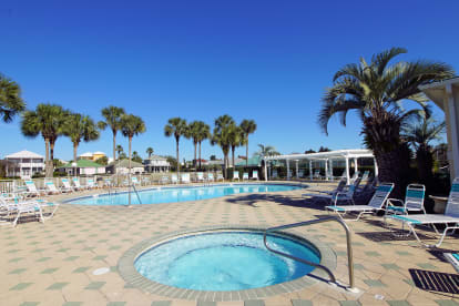 From the moment you walk into "DESTIN"ATION BY THE SEA COTTAGE, you will feel right at home! A large, open concept, family room/dining room/kitchen provides plenty of space to relax with family and friends. The master bedroom has a recently remodeled private bath with double vanity and large walk in shower, a king size bed and private access to the back deck. There are two additional bedrooms, one with a queen size bed and the other with two twin beds and one double bed to provide plenty of sleeping space. All of the bedrooms have flat panel TVs. The recenlty remodeled kitchen is fully stocked with all the dishes, pots/pans, and small appliances such as blender, toaster, coffee maker. A gas BBQ grill is on the side porch with easy access to the kitchen. There is a laundry room with full size washer and dryer along with an ironing board and iron. Enjoy the Florida sunshine, ocean breezes and your morning coffee on the wrap around front porch surrounded by beautiful palm trees. Or have your evening cocktails on the back deck that overlooks the pool, hot tub and community greenspace. You just need to bring your swimsuit and flip flops!