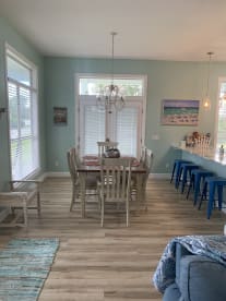 This house is so beautiful! It was beautifully decorated and clean. Its definitely felt like home away from home. The master bedroom has a patio right outside the back door which also faces the community pool. The house was a short walk to the beach and a short drive to stores and attractions. The kitchen is fully equipped to prepare home cooked meals. We loved the selection of beach toys and the outdoor shower. I would recommend this home to everyone! We will definitely be back!